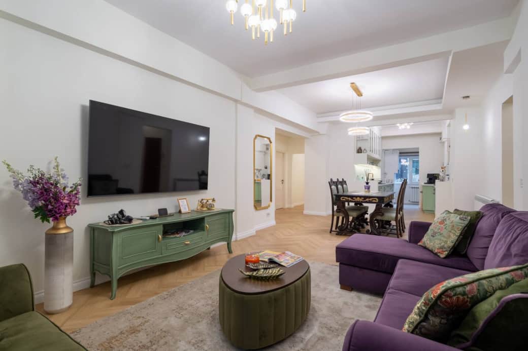 3-bedroom apartment, perfect for large families or groups. Located in the heart of the city, just a 2-minute walk from the Piata Romana metro station and a 4-minute walk to the famous Calea Victoriei street.